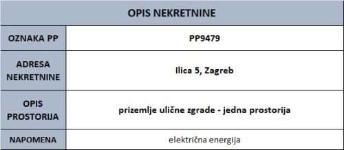 **** U odnosu na poslovni prostor pod rednim brojem 18. režijski troškovi s osnove potrošnje električne energije zajednički su s drugim poslovnim prostorom u vlasništvu Republike Hrvatske te će se plaćanje istih regulirati sporazumom o raspodjeli troškova.